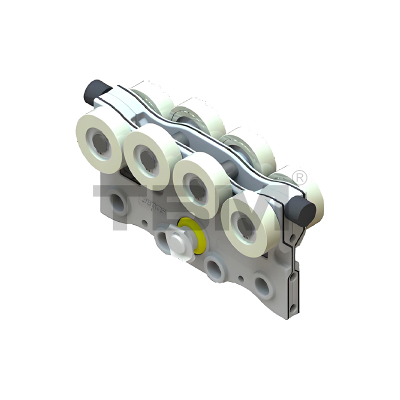 ■ Troli dibuat dari bahan nilon berkekuatan tinggi dan tahan aus agar dapat meluncur dengan mulus dan pengoperasian yang mudah. Two rows of upper and lower rollers provide pry-resistant and anti-bias protection.