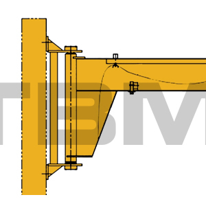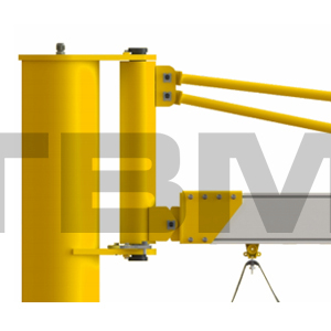 | Sumbu putar jib crane 270° terletak pada dua lug di atas kolom. Bantalan penyangga bidang dan busing tembaga yang dapat melumasi sendiri dipasang di antara lug atas dan bawah serta sumbu slewing. Hal ini memastikan putaran yang fleksibel dan meredam ayunan inersia jib saat berhenti. Batas sudut slewing eksternal disediakan untuk mengatur sudut slewing jib. |
