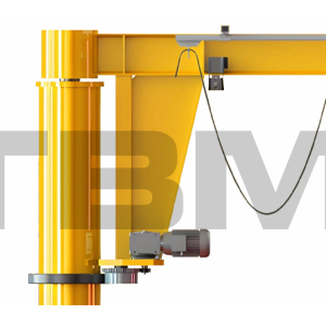 | Sumbu putar jib crane 360° terletak langsung pada tabung melingkar kantilever crane, konsentris dengan kolom. Daya disuplai melalui cincin kolektor 360°, memungkinkan rotasi 360 derajat tanpa batas. Batas slewing eksternal juga dapat digunakan untuk mengatur sudut slewing jib crane. |